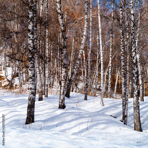 Fototapeta premium Birch trees forest in the mountains