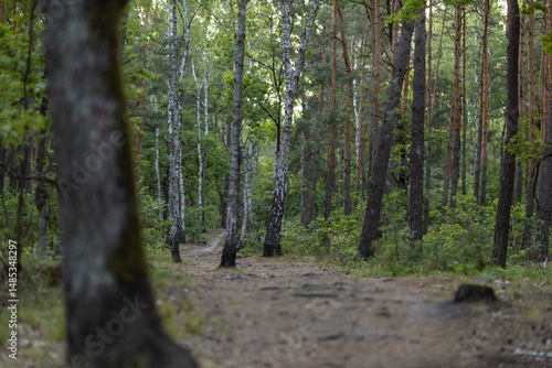 Obraz premium Birch trees in a lush summer forest