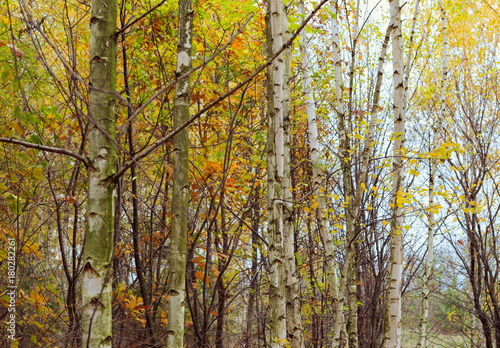 Fototapeta premium Birch wood with yellowed leaves