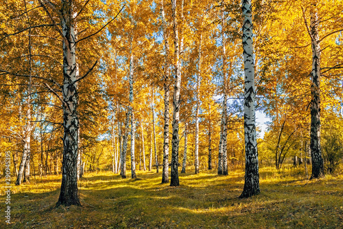 Fototapeta premium birches with yellow leaves on a sunny autumn day