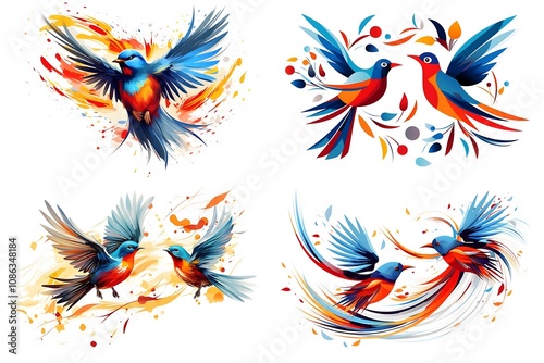 © Tanvir, Fototapeta premium bird, animal, nature, flying, wildlife, illustration, wing, design, vector, feather, silhouette, beak, colourful, flight, horizontal, no people, art, black, blue, sky, tree branch, beautiful, freedom,
