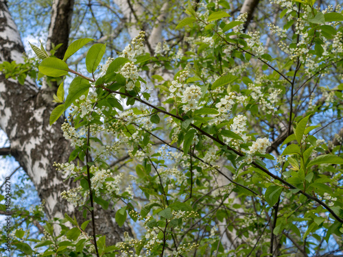 © Maslov Dmitry, Fototapeta premium bird cherry flowers on branches