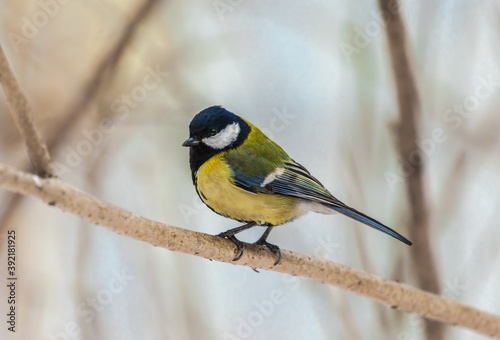 © Александр Коликов, Fototapeta premium Bird chickadee on branch in autumn woods