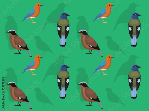 Obraz premium Bird Cochoa Thrush Cartoon Cute Seamless Wallpaper Background