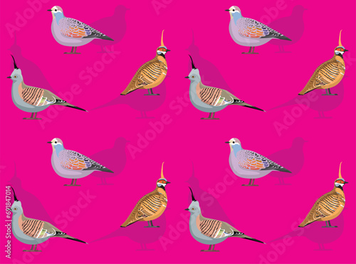 Obraz premium Bird Crested Pigeon Bronzewing Cartoon Cute Seamless Wallpaper Background