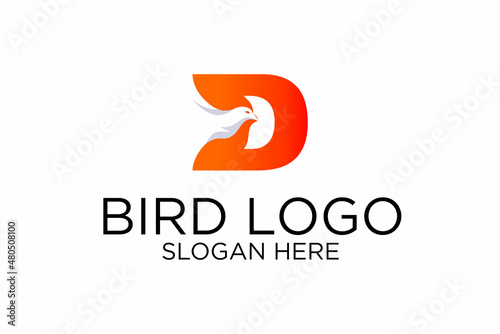 © Adi, Obraz premium bird design logo and initial letter d. premium vector