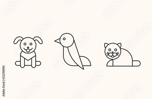 Fototapeta premium Bird, dog, cat icons, thin line style
