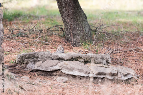 © Jmorante, Obraz premium bird drinking water in stone trough