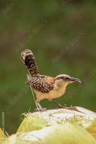 Obraz premium Bird Eating a Coconut