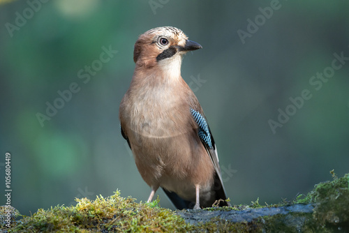 © Marcin Perkowski, Fototapeta premium Bird - Eurasian Jay Garullus glandarius, bird bathes and drinking water in a forest pool, summer time