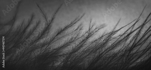 © miss.lemon, Fototapeta premium Bird feather abstract background. Feather texture closeup, macro. Banner. Fluffy black plume.