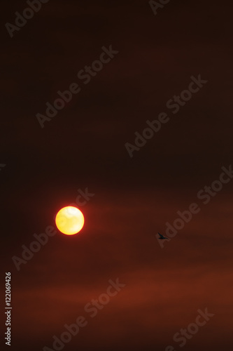 Obraz premium Bird flying over the sun