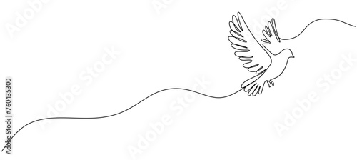 © Natvc, Fototapeta premium Bird flying with heart in continuous line art drawing. One outline of dove animal. Vector illustration isolated. Minimalist design handdrawn.
