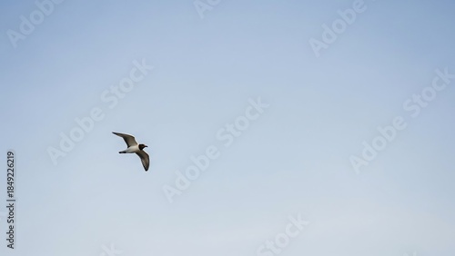 © Rafael, Fototapeta premium Bird in Flight Against Clear Blue Sky Background