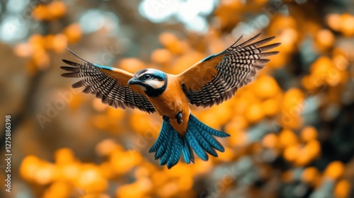 © TITISCAHYA, Fototapeta premium Bird in flight, forest, bokeh, nature, poster