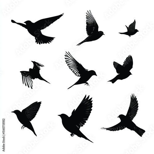 © Fouzia, Obraz premium bird in flight silhouette set, Black & White silhouette set