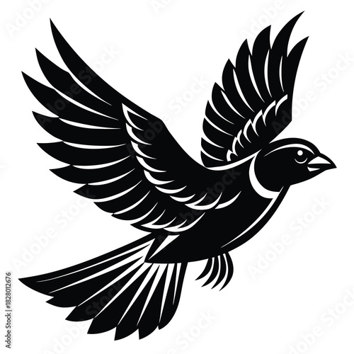 Obraz premium Bird in flight silhouette with spread wings vector illustration for graphic design and creative projects