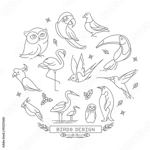 © chanitar, Fototapeta premium Bird line icons with outline style vector design elements