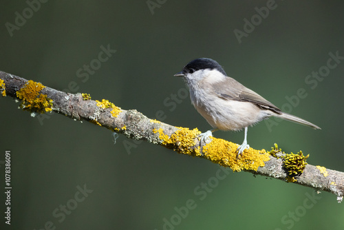 Naklejka premium Bird - Marsh Tit ( Poecile palustris ) perched on tree autumn time small bird...