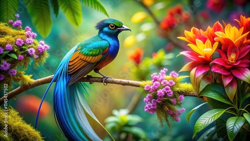 Fototapeta premium Bird of Paradise Panoramic Painting - AI Generated Art