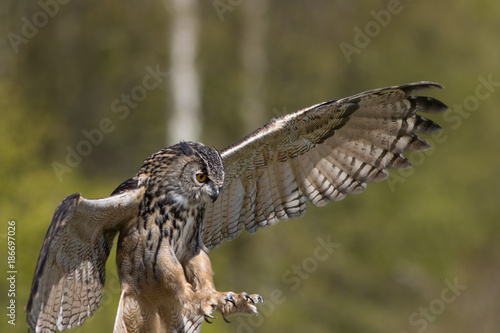 Fototapeta premium Bird of prey attacking prey. European Eagle Owl hunting.