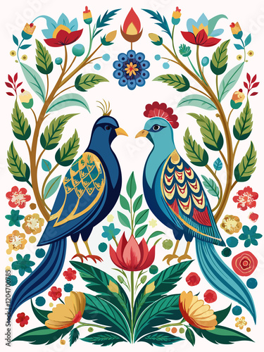 © Shah Md prince, Naklejka premium bird on a branch with flowers
