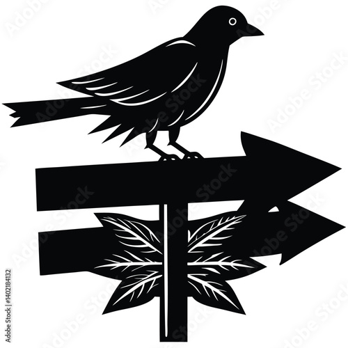 © graphicspro, Naklejka premium bird on a signpost silhouette