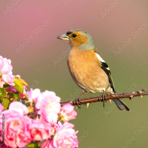 © Brika, Fototapeta premium Bird on Blossoms in Garden