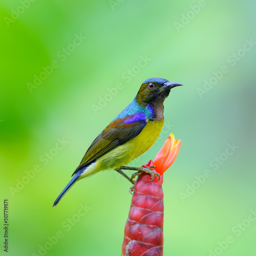 © werafotolia, Obraz premium Bird on the flower, Brown-throated Sunbird (Anthreptes malacensis)