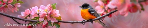 © BrandwayArt, Fototapeta premium Bird Perched on Apple Blossom Branch