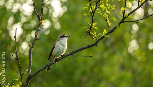 © Buka, Obraz premium Bird Perched on Branch in Spring Sunlight