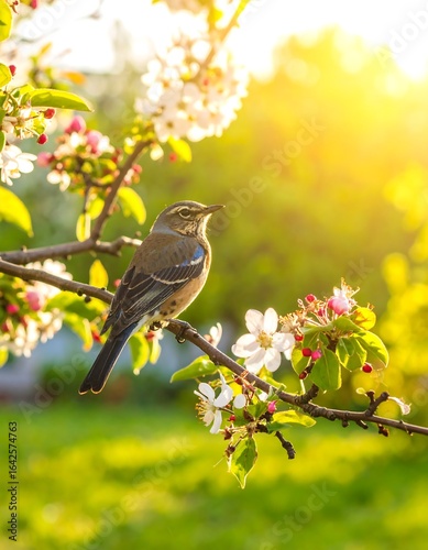 © sum, Obraz premium Bird perched on flowering branch