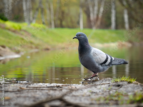 Obraz premium Bird pigeon on the lake in the park