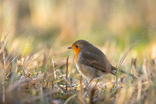 Fototapeta premium Bird Robin Erithacus rubecula, small bird, spring time in Poland Europe