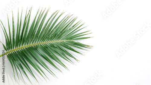 © AkuAku, Obraz premium Bird's-eye view of a lush green palm frond on a plain white surface