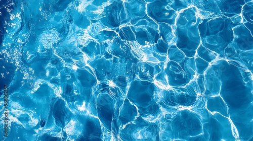 Obraz premium Bird's-eye view of blue water in a swimming pool with surface light reflections