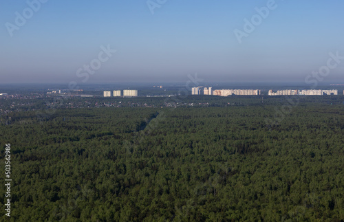 Fototapeta premium bird's eye view of the city forest and fields