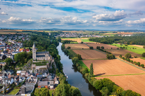 © fotografci, Fototapeta premium Bird's-eye view of the St. Lubentius Basilica in Dietkirchen/Germany on the Lahn