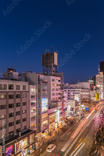 Fototapeta premium Bird’s view of the Japanese youth culture fashion’s district crossing intersection of Harajuku Laforet named champs-élysées in Tokyo, Japan at night.
