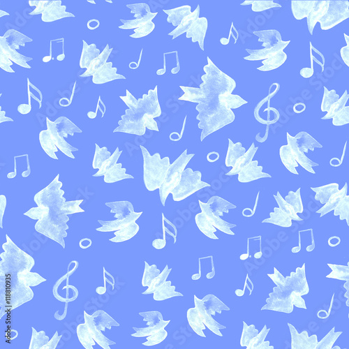 Fototapeta premium Bird seamless pattern, spring background with singing birds