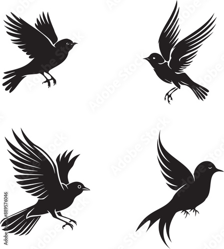 © AP vector & Png, Obraz premium Bird set icons logo type silhouette