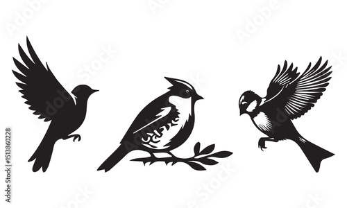 © MstRekha, Obraz premium Bird set silhouette vector, on white background.