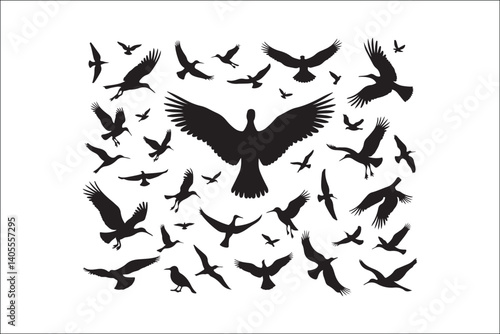 © vector silhuette, Naklejka premium Bird Silhouette Bundle | Flying Birds Vector Clipart | SVG, PNG, EPS for Cricut & Laser CuttingBirds Vector Silhouettes | Wildlife Animal SVG Files | Digital Bird Clipart for Crafts & DecorFlying