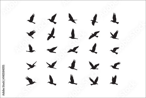 © vector silhuette, Naklejka premium Bird Silhouette Bundle | Flying Birds Vector Clipart | SVG, PNG, EPS for Cricut & Laser CuttingBirds Vector Silhouettes | Wildlife Animal SVG Files | Digital Bird Clipart for Crafts & DecorFlying