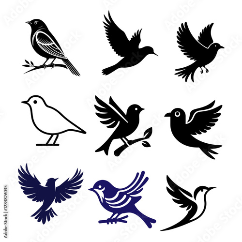 © nillgraph20, Obraz premium bird silhouette bundle vector Style with white background