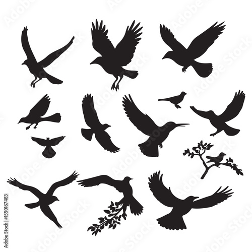 Obraz premium Bird Silhouette Set in Flight and Perch