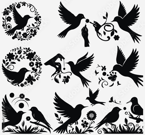 © DesignX24, Obraz premium bird silhouette vector art design