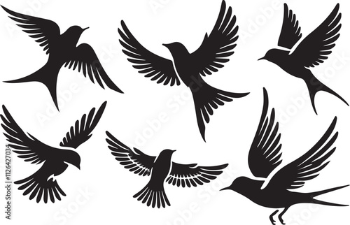 © HAFIJA KHATUN, Fototapeta premium Bird silhouette vector illustration. black and white silhouette of a bird collection.