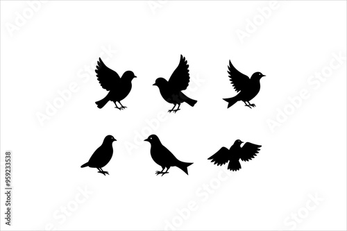 Obraz premium "Bird Silhouettes Collection: Black Bird Silhouettes on White Background -...