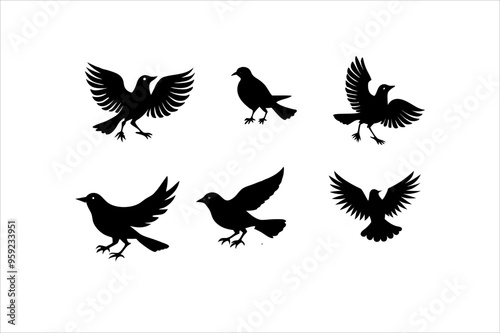 Obraz premium "Bird Silhouettes Collection: Black Bird Silhouettes on White Background -...